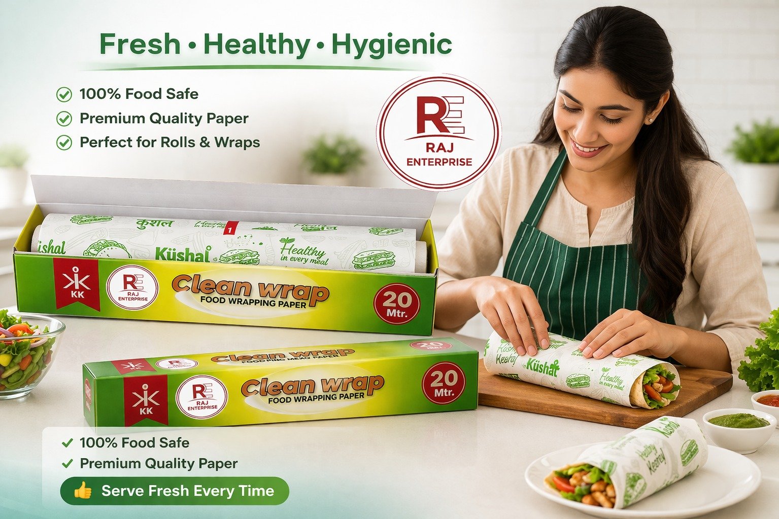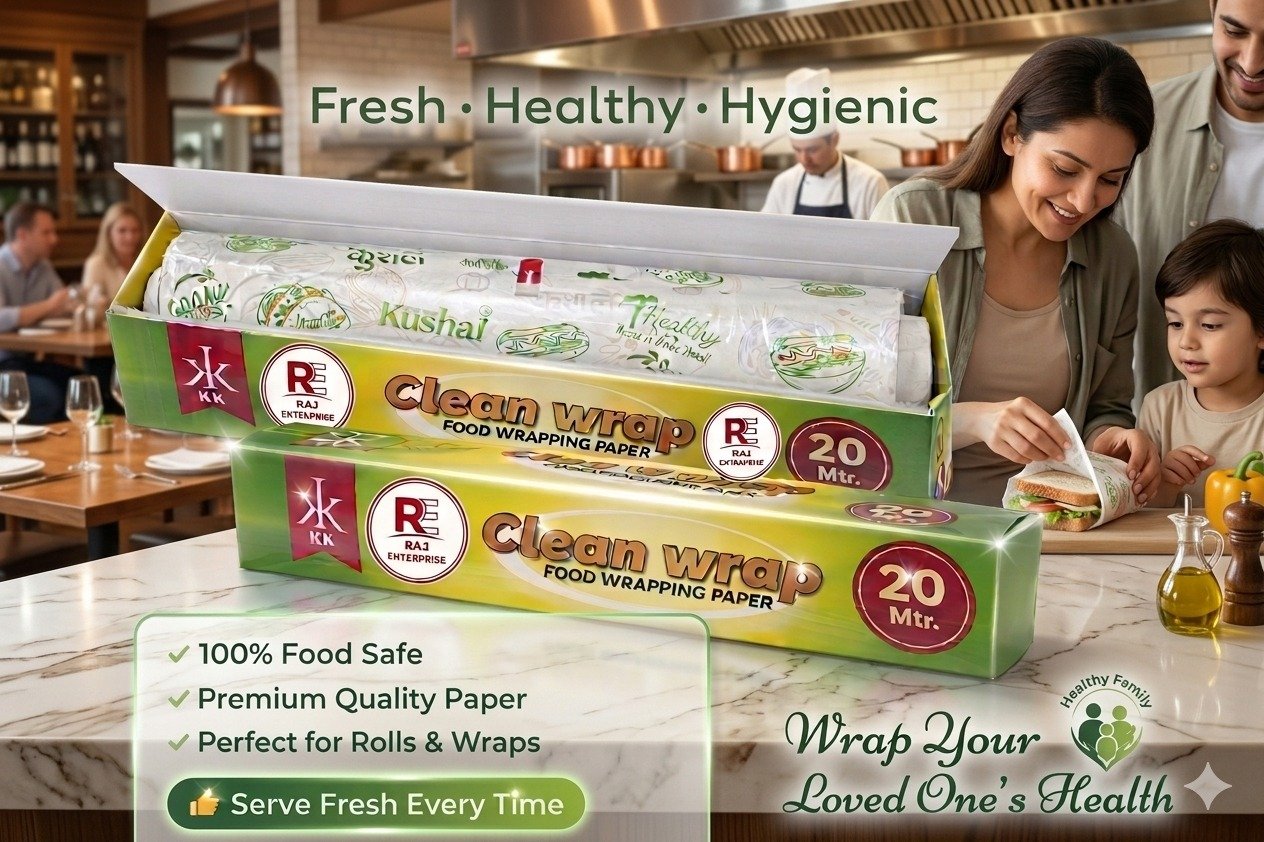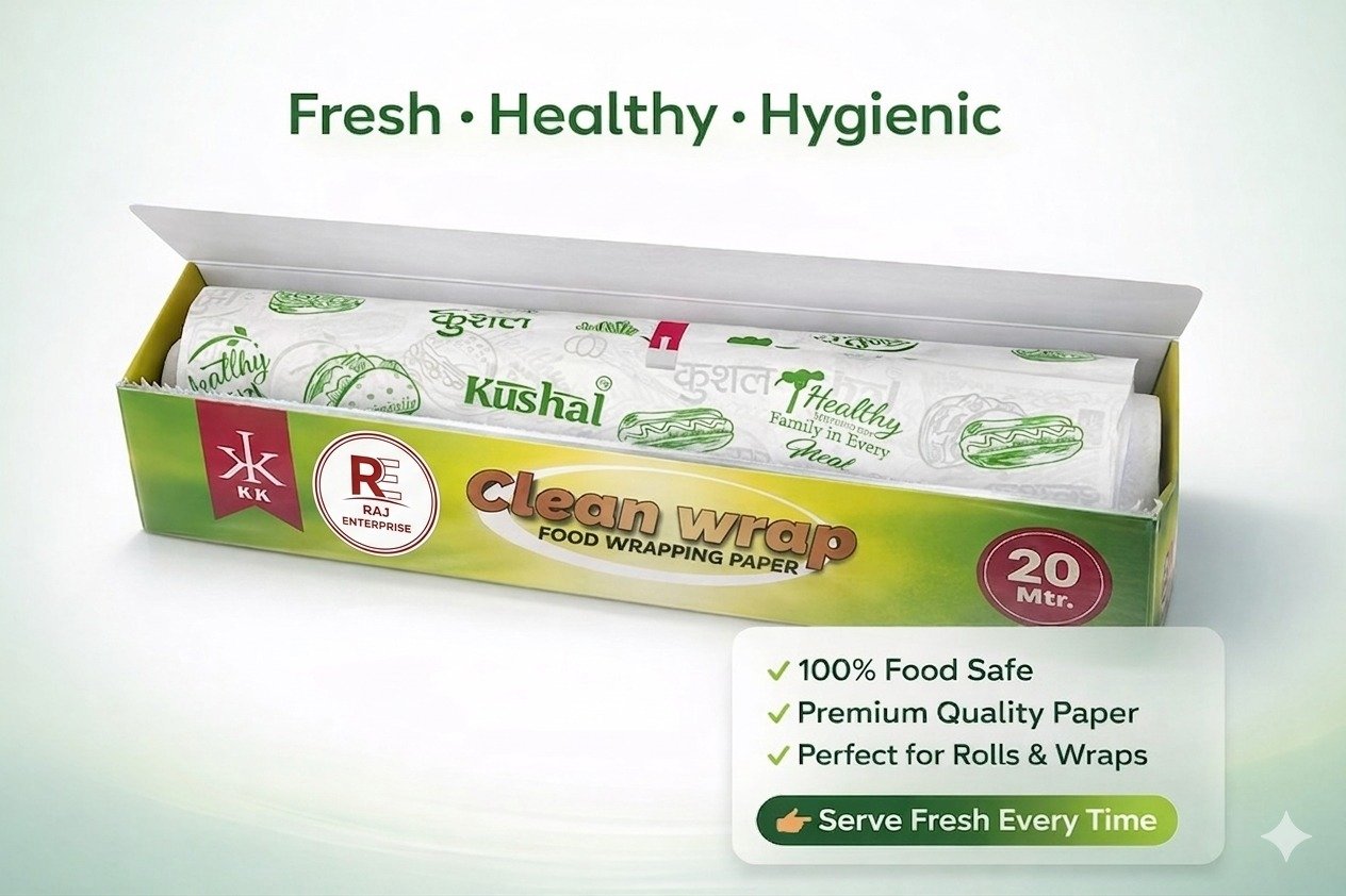 Keep your food fresh, hygienic, and सुरक्षित with Raj Home Clean Wrap Food Wrapping Paper – premium quality, food-safe wrap perfect for daily kitchen use.