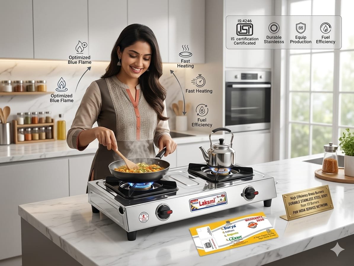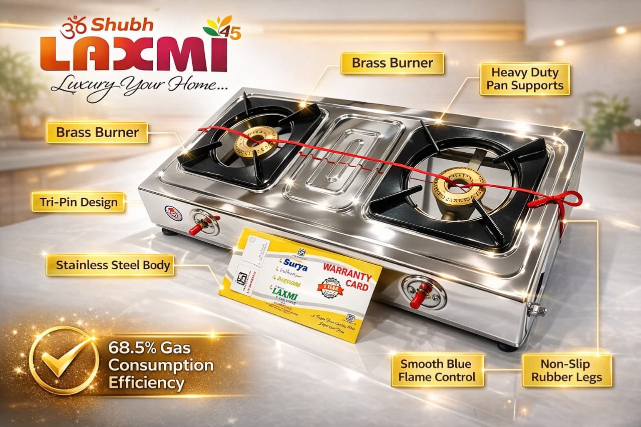 Equipped with high thermal efficiency brass burners, the stove ensures faster cooking while saving fuel. The brass top design provides consistent flame distribution, making it perfect for everything from quick meals to elaborate dishes.