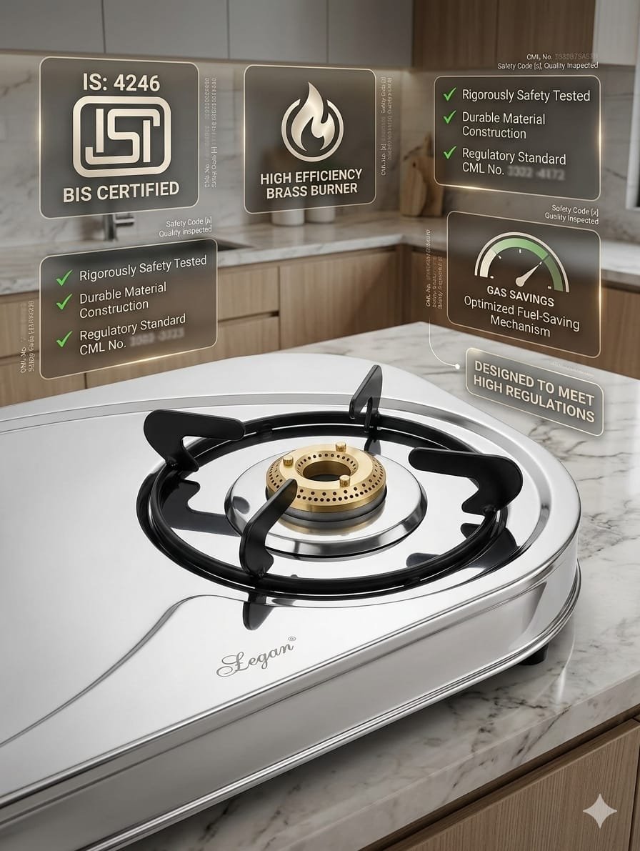 Equipped with premium brass burners, the stove ensures uniform heat distribution and long-lasting efficiency. With an impressive 68.5% thermal efficiency, it helps you cook faster while saving gas, making it ideal for everyday use.