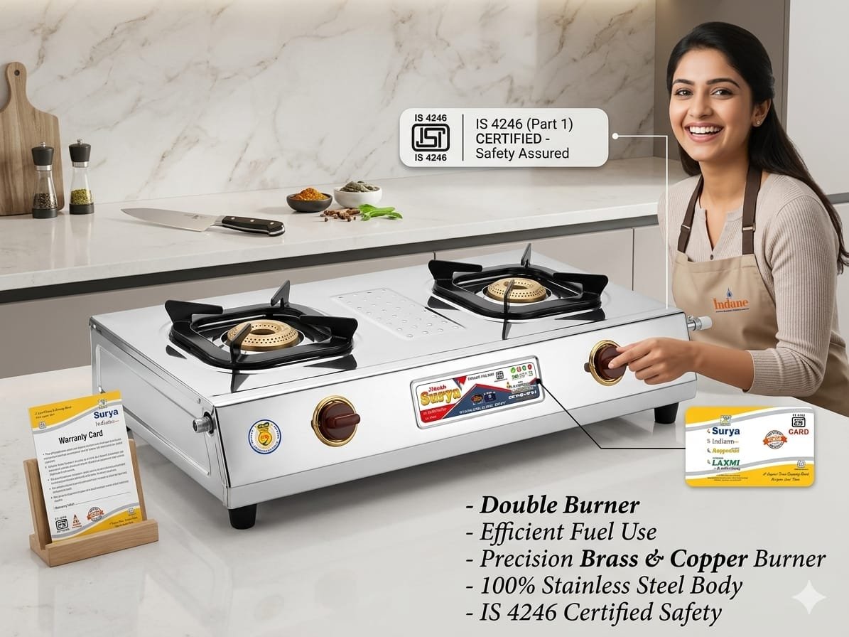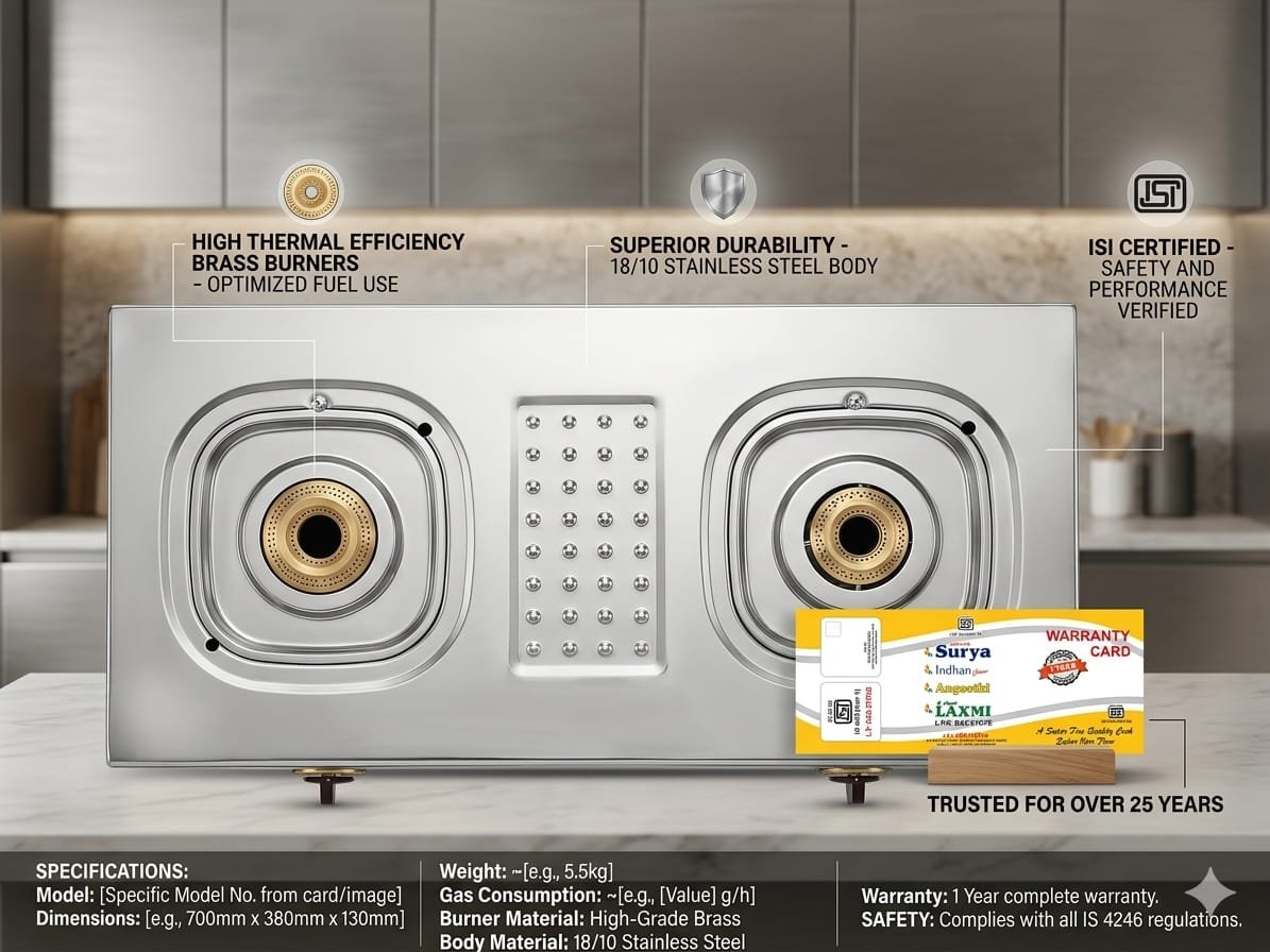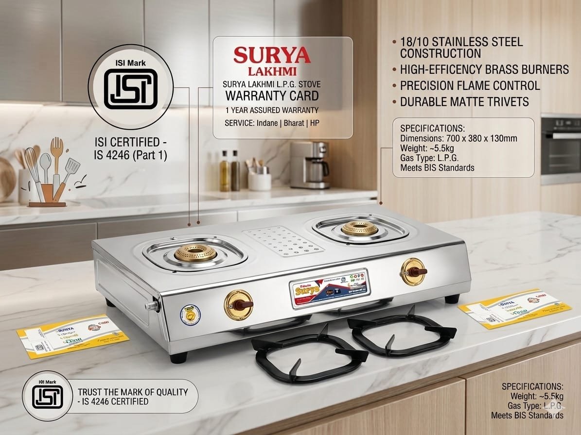 Designed with ISI certification (IS 4246), this stove guarantees safety and reliability for daily use. The matte-finish pan supports (trivets) ensure stable placement of utensils, making your cooking experience safe and hassle-free.