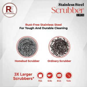 Tackle the toughest kitchen mess effortlessly with the Raj Home Stainless Steel Scrubber (2 Pcs). Designed with heavy-duty stainless steel, this scrubber is perfect for removing burnt food residues, grease, and stubborn grime from utensils and cookware.