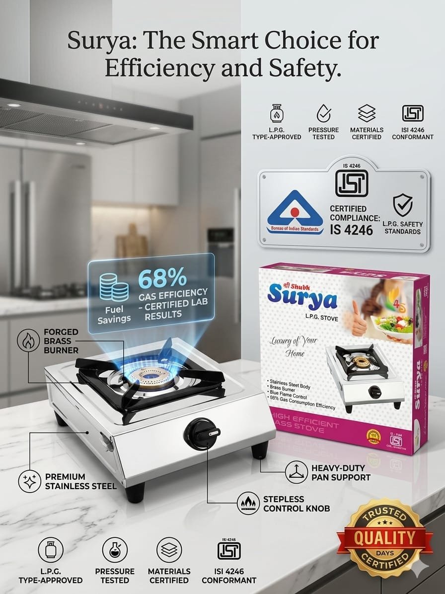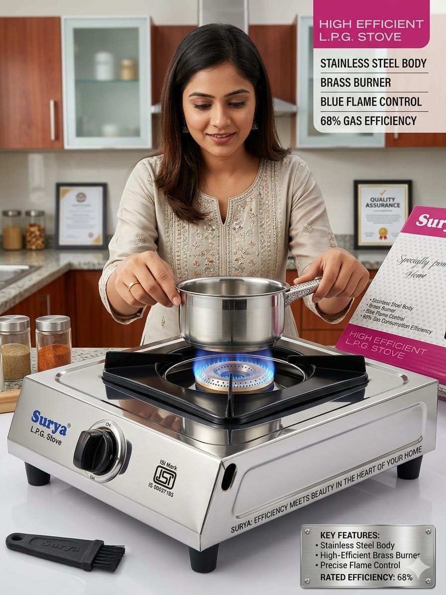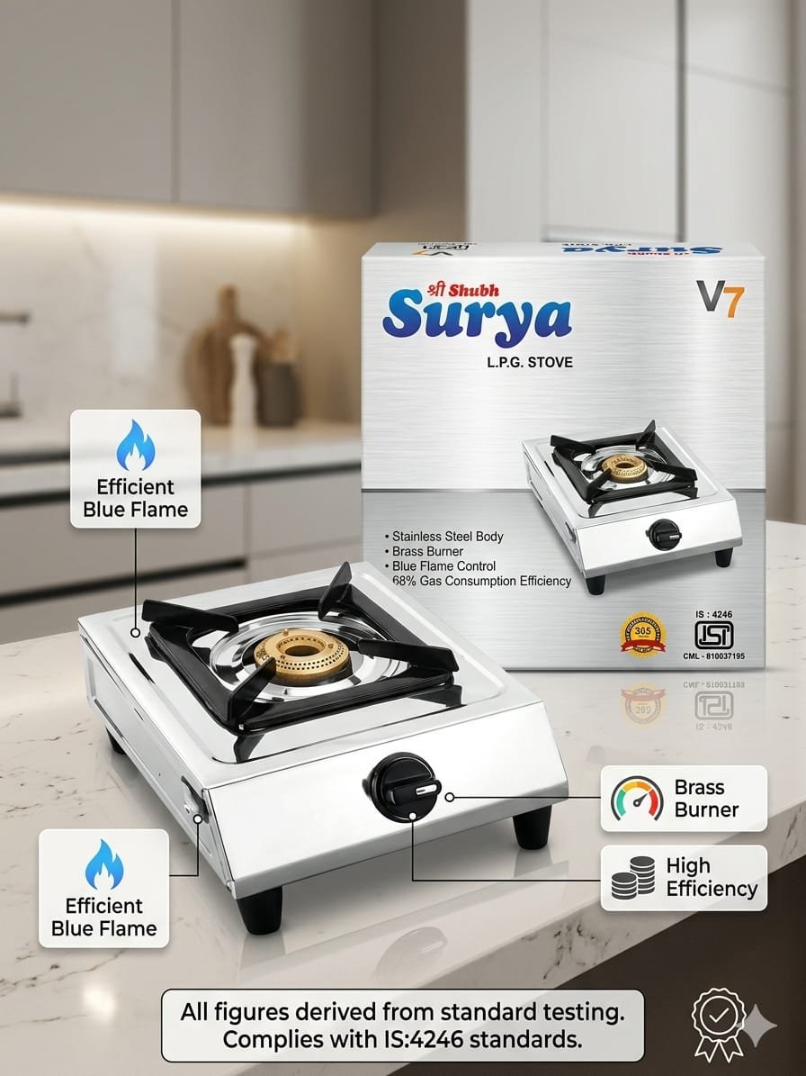Featuring a high-grade stainless steel body, the stove is resistant to rust, easy to clean, and built for long-lasting durability. The forged brass burner ensures excellent thermal conductivity, providing uniform heat distribution for faster and more efficient cooking.